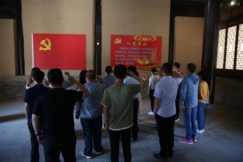 全體人員首先來(lái)到安吳青訓班革命舊址,一進(jìn)院,在安吳堡的六椽廳內,面向鮮紅的黨旗,重溫了入黨誓詞。然后在講解員的帶領(lǐng)下了解青訓班在中華民族生死存亡之際應運而生,在中國共產(chǎn)黨領(lǐng)導下發(fā)展,在特殊條件下吸引、教育并組織廣大愛(ài)國青年參加抗日戰爭的歷史背景,展廳的一張張照片、一件件舊物無(wú)聲的講述了那段愛(ài)國青年們“學(xué)好本領(lǐng)上前線(xiàn)”的崢嶸歲月。