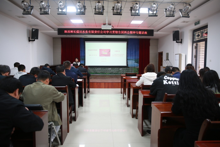 為認真學(xué)習貫徹全國兩會(huì )精神,4月19日上午,陜西彬長(cháng)煤田水務(wù)有限責任公司舉辦學(xué)習貫徹全國兩會(huì )精神專(zhuān)題講座,特邀請咸陽(yáng)市委黨校法學(xué)教研室主任,韋付萍教授進(jìn)行授課,公司全體員工參加講座。